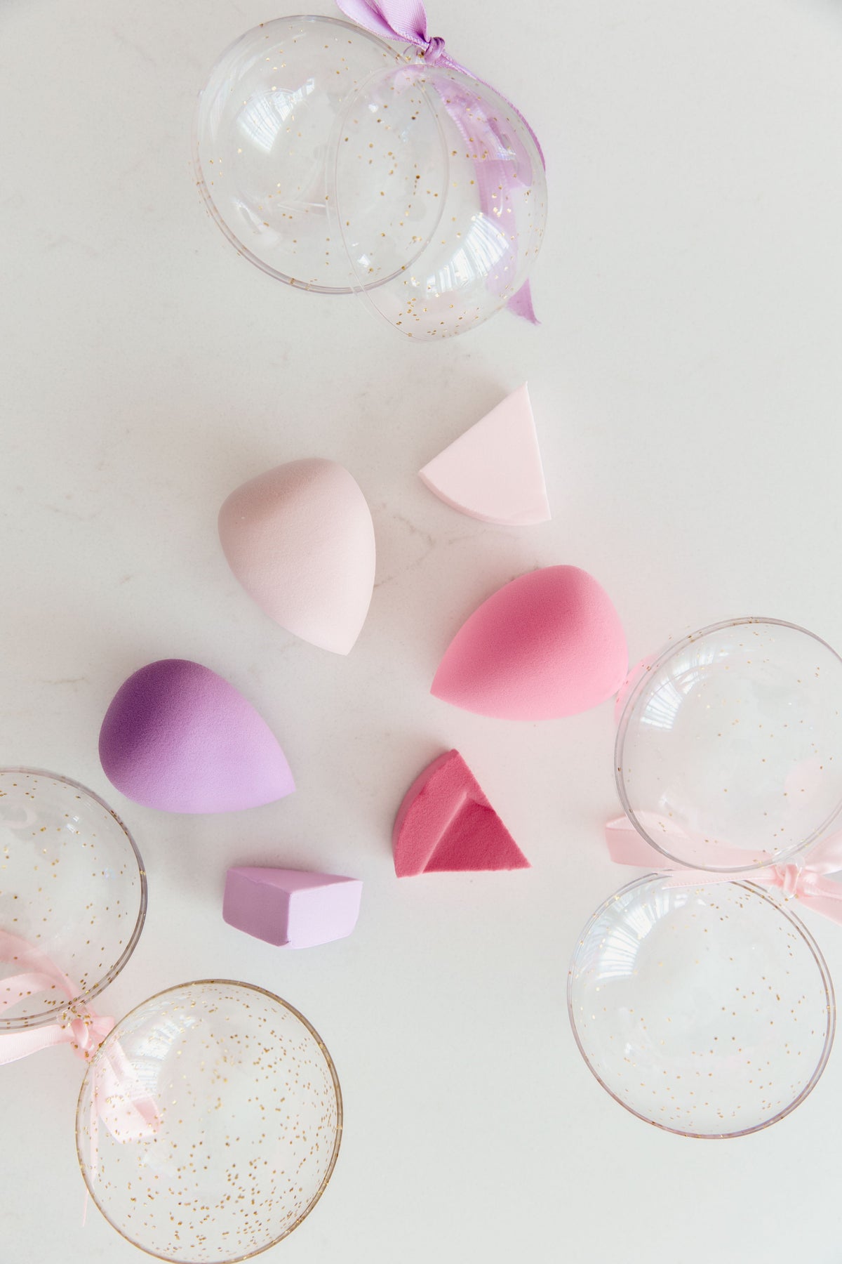 Introducing our Pretty Things On The Tree Gift Ornaments – a charming addition to your holiday season. This set includes three clear ornaments, each elegantly tied with a cute ribbon. Inside every ornament, you'll discover a delightful assortment of makeup sponges, a sweet little gift to hang on the tree or tuck in a stocking this Christmas!
